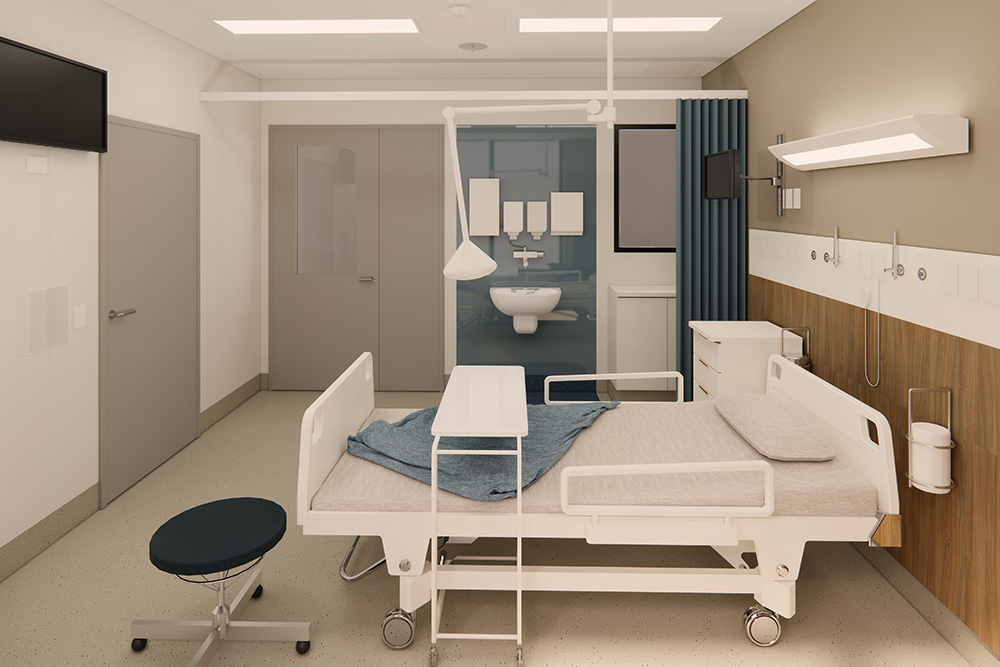 Artist’s impression of Cardiac Care Unit room in new public ward block.